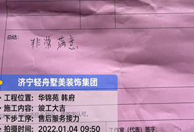 貴府的工程已全部圓滿竣工并通過了竣工驗收,感謝您在整個過程中對于我們的理解、支持和包容。輕舟美住裝飾張興魯工作室提前恭賀您和家人喬遷新居,恭祝您和家人生活幸福美滿、事業蒸蒸日上。